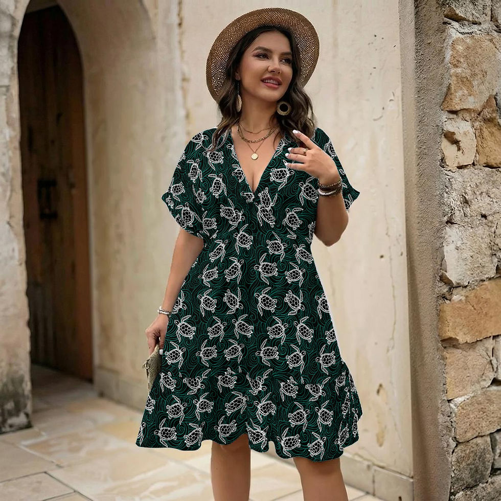 Sea Turtles Boho Flowy V-Neck Short Sleeve Dress
