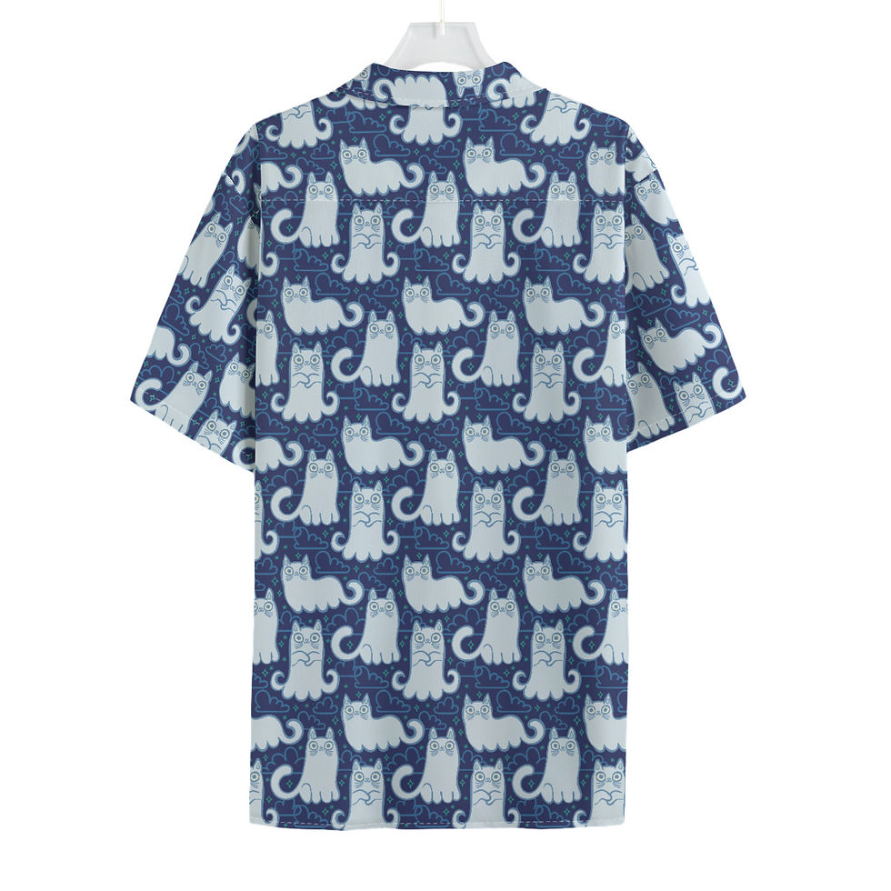 Blue Kitty Ghosts Men's Hawaiian Shirt