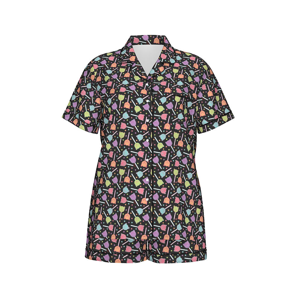 Kitty Pops Silk Pajama Set With Short Sleeve