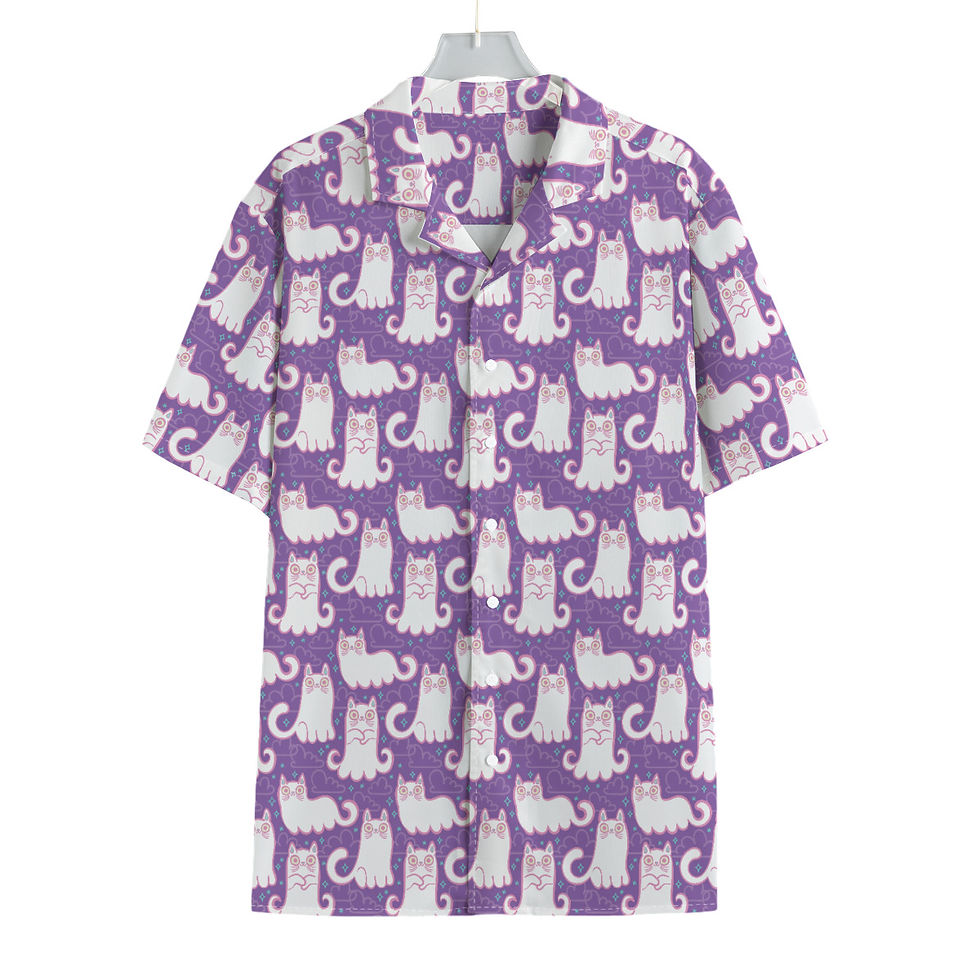 Purple Kitty Ghosts Hawaiian Shirt
