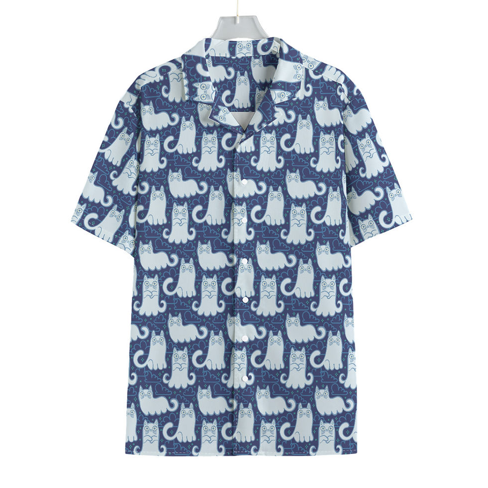 Blue Kitty Ghosts Men's Hawaiian Shirt