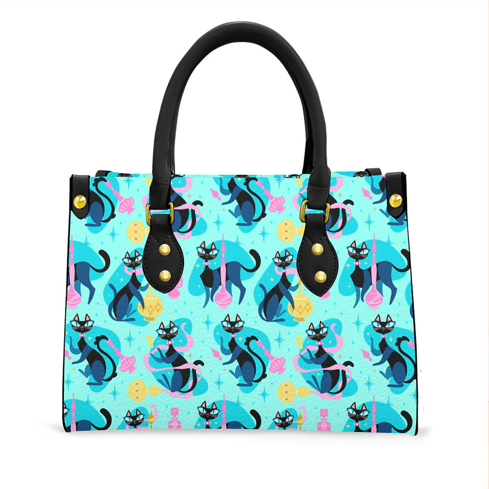 Diamond Art Deco Cats in Teal Handbag With Single Shoulder Strap