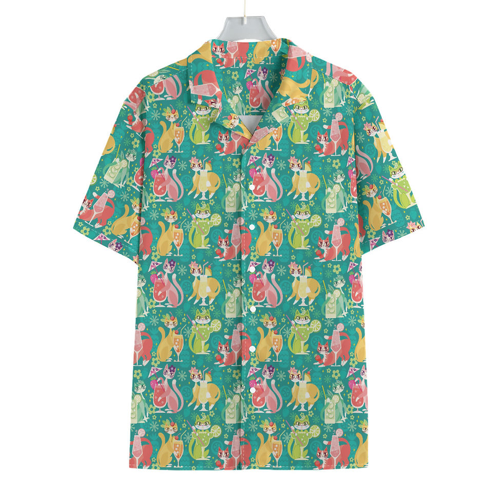 Cocktail Kitties in Turquoise Hawaiian Shirt