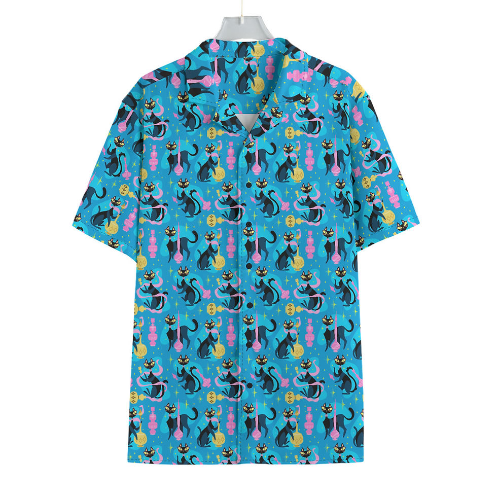 Retro Genie Cats in Black Hawaiian Shirt