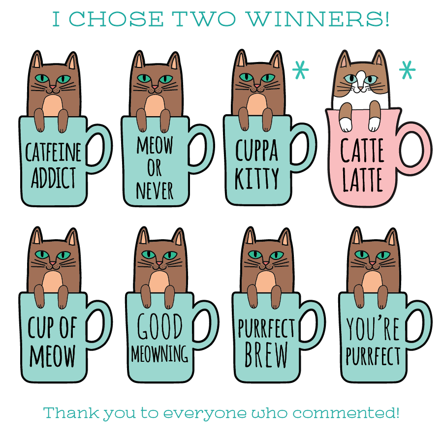 What should the mug say? I am making a new coffee cat patch design to launch at my booth for @catconworldwide so I ran a naming contest though my instagram. It was a success and I got a lot of great ideas.